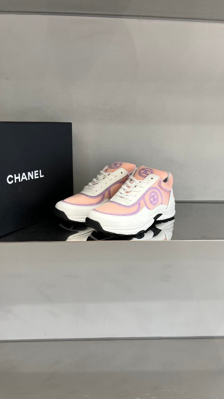 The coolest leather Chanel sneakers with suede black 'CC' logos. In great condition; moderate signs of wear on soles, mild signs of wear and marks on leather, one small scratch on back leather of right shoe.