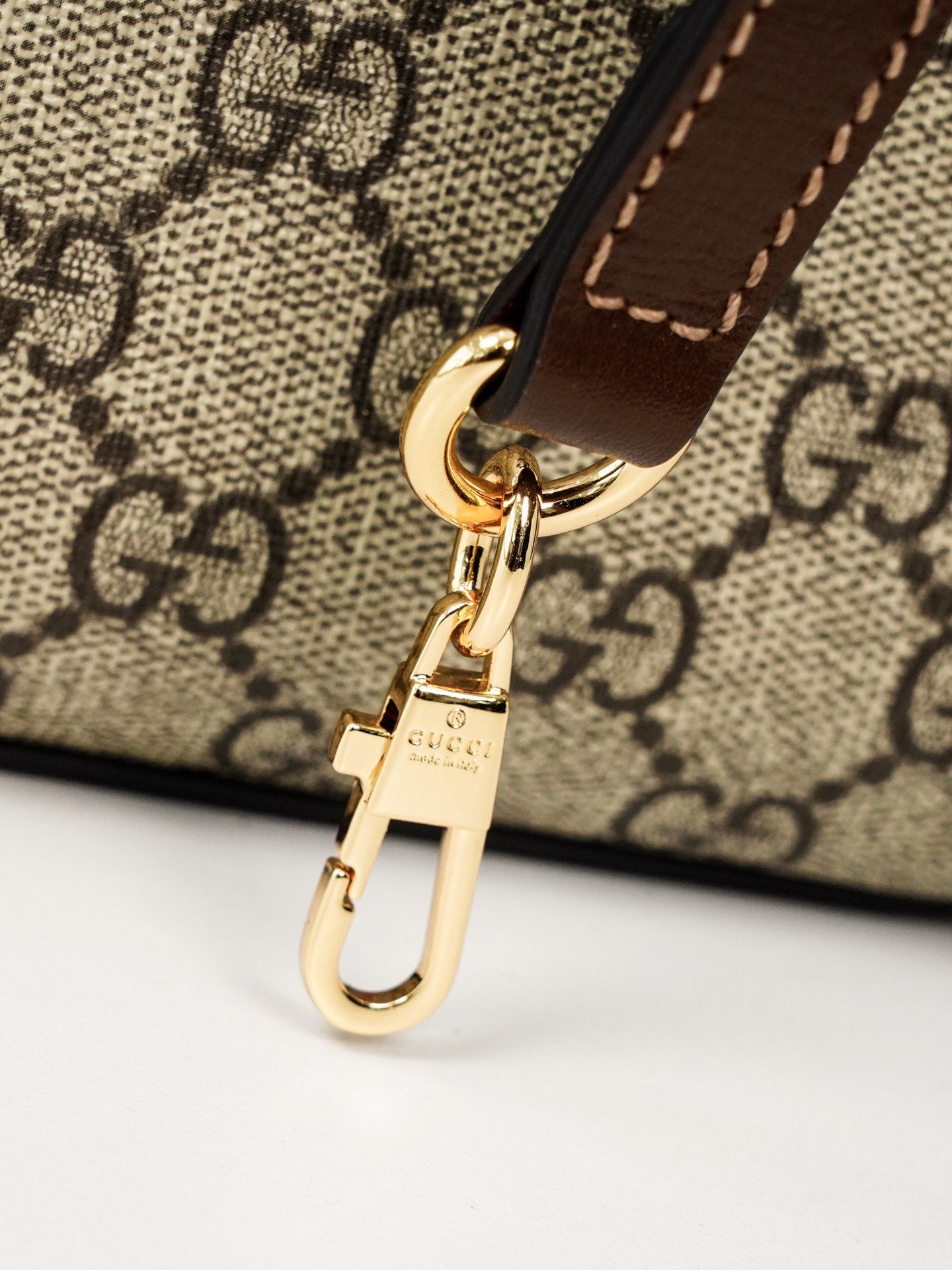 Crafted in the label's iconic GG Supreme canvas, this beige mini tote bag from the Gucci Aria collection has a brown leather strap and trims.