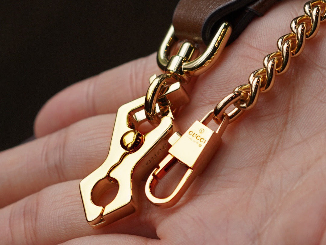 Gucci borrowed notes from its '50s archives when designing its Gucci Horsebit 1955 shoulder bag. This miniature style is crafted from canvas into a curved flap-top silhouette with leather trims, and it swings from a shoulder strap that can be removed should you wish to wear it as a clutch.