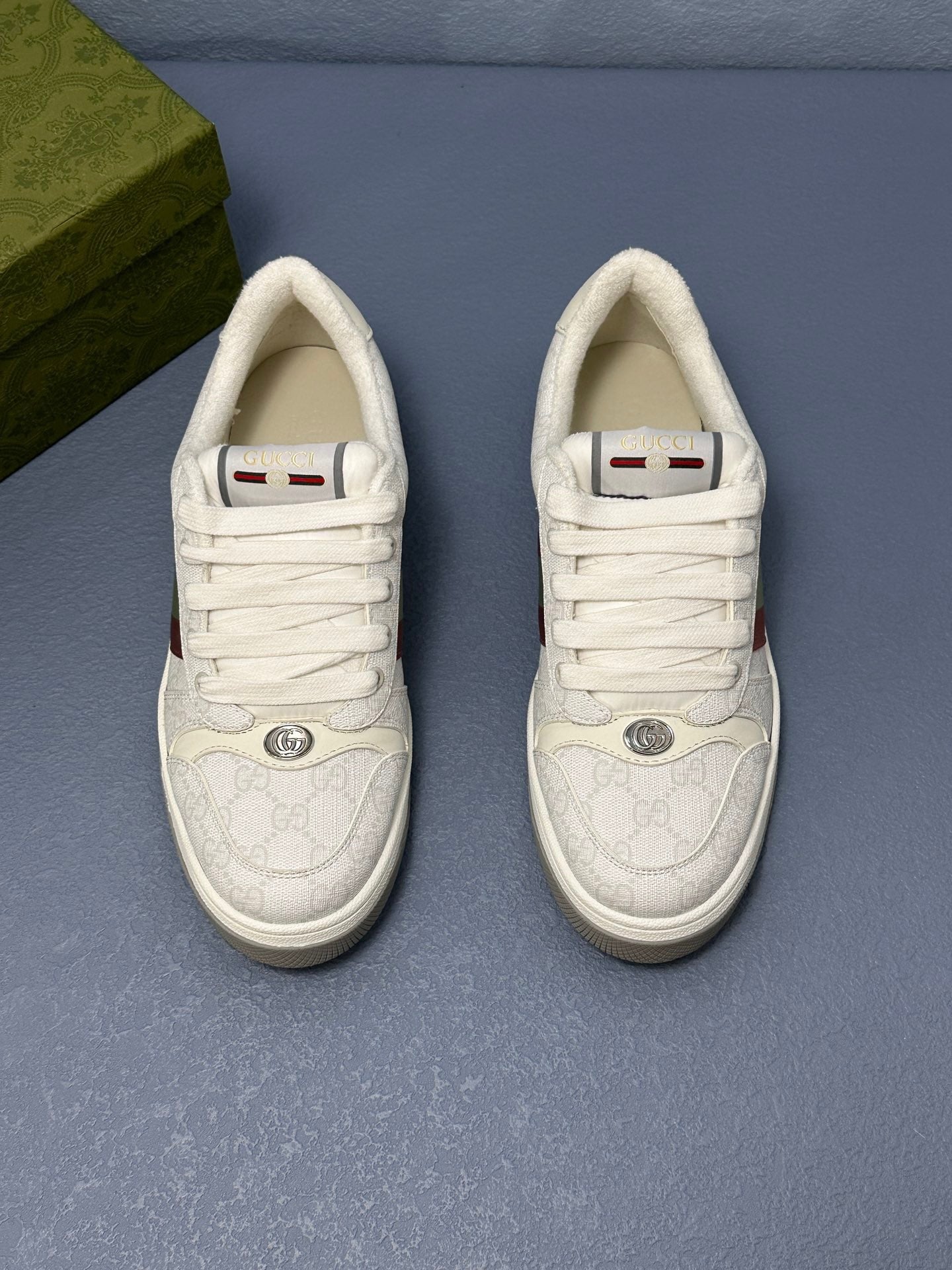 Inspired by vintage sportswear, the Screener sneakers from Gucci reference a decade that the label taps into often: the '70s. Made in Italy from leather, the design is punctuated with the Web stripe on either side and crystal-embellished GG Supreme panels.