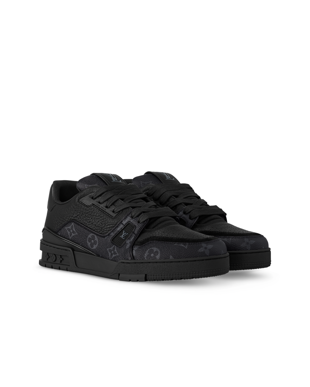 The Trainer Sneaker is revisited in Monogram Eclipse and Monogram Reverse canvas. Inspired by basketball sneakers, this cult design has an elaborately constructed upper. It is finished with a contrasting white rubber outsole, which is decorated with Monogram Flowers.