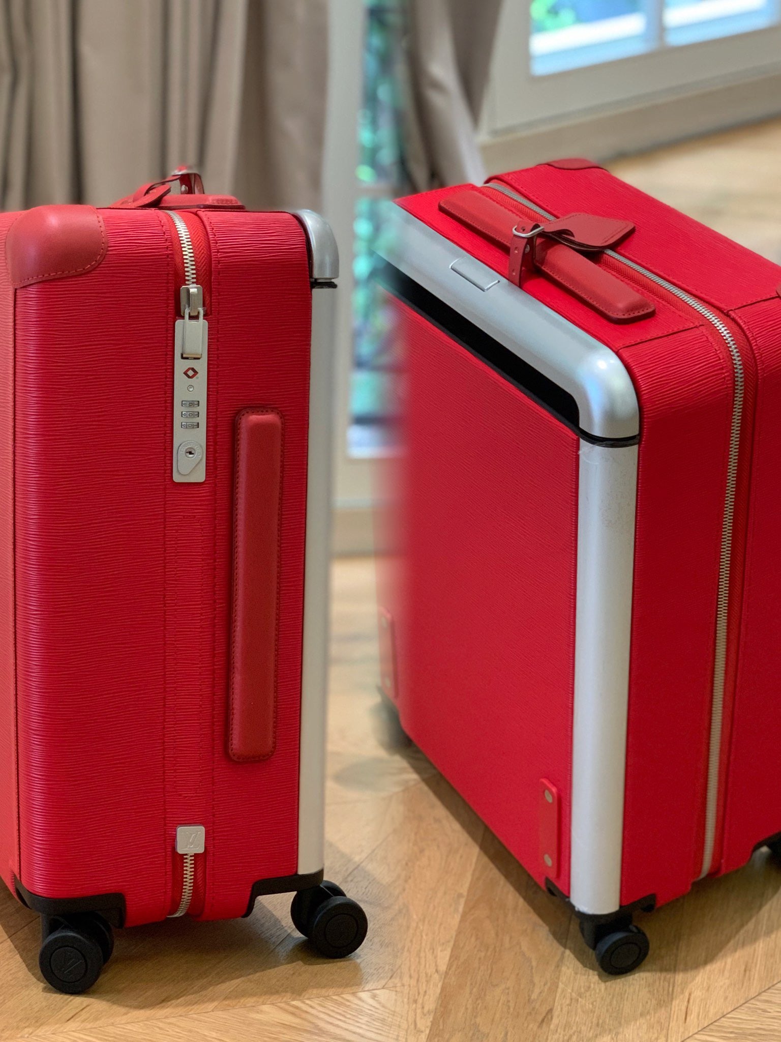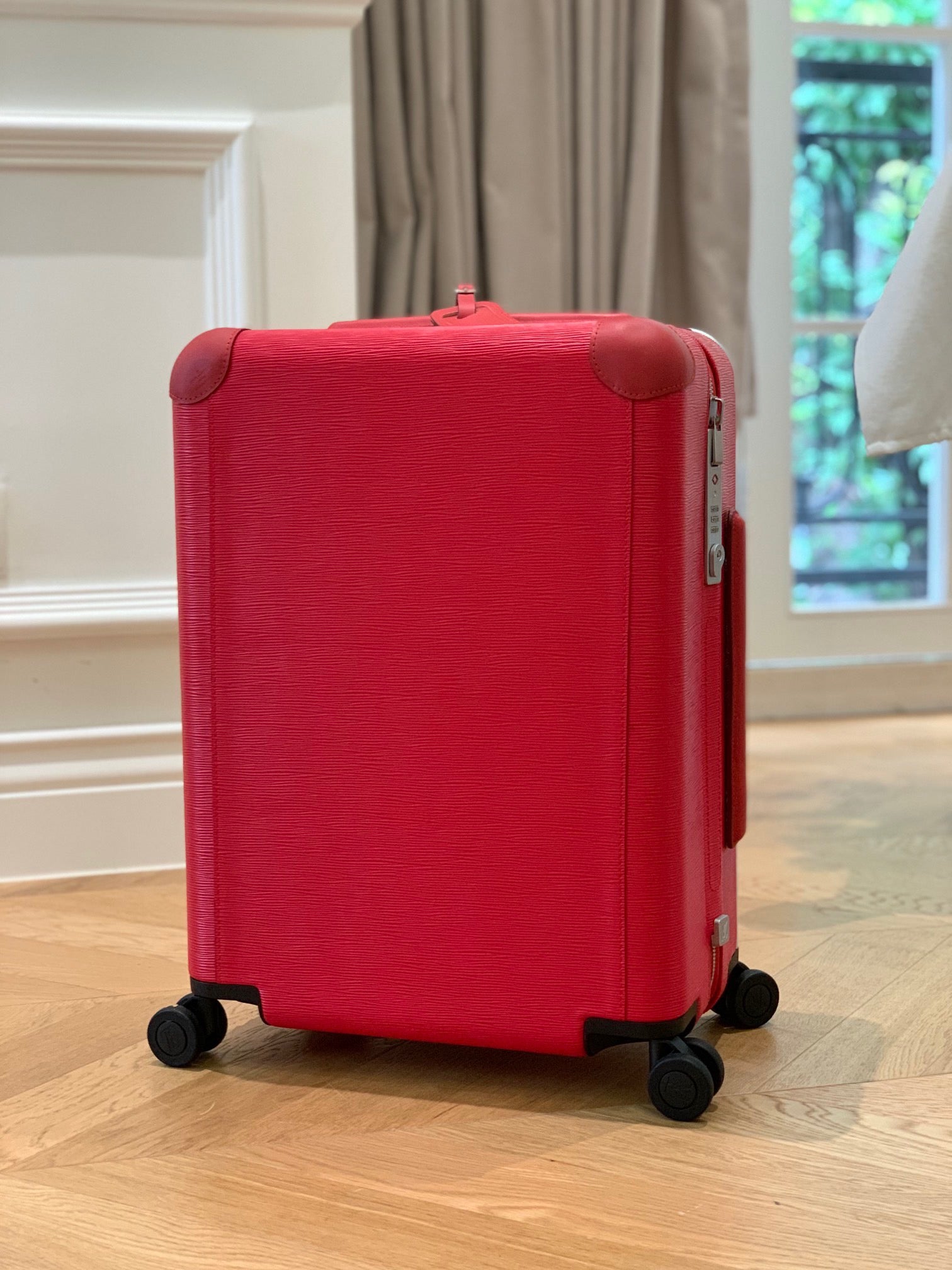 Meet the future of luxurious rolling luggage. Imagined by Marc Newson, widely acknowledged as the most influential industrial designer of his generation, this lightweight 4-wheeled carry-on has a completely flat interior thanks to its large external cane. Every detail exudes innovation and lightness: from the discreet new TSA lock to the most comfortable wheels ever designed by Louis Vuitton. You can add your own stamp by customizing this case with the colour stripes and initials of your choice in store.