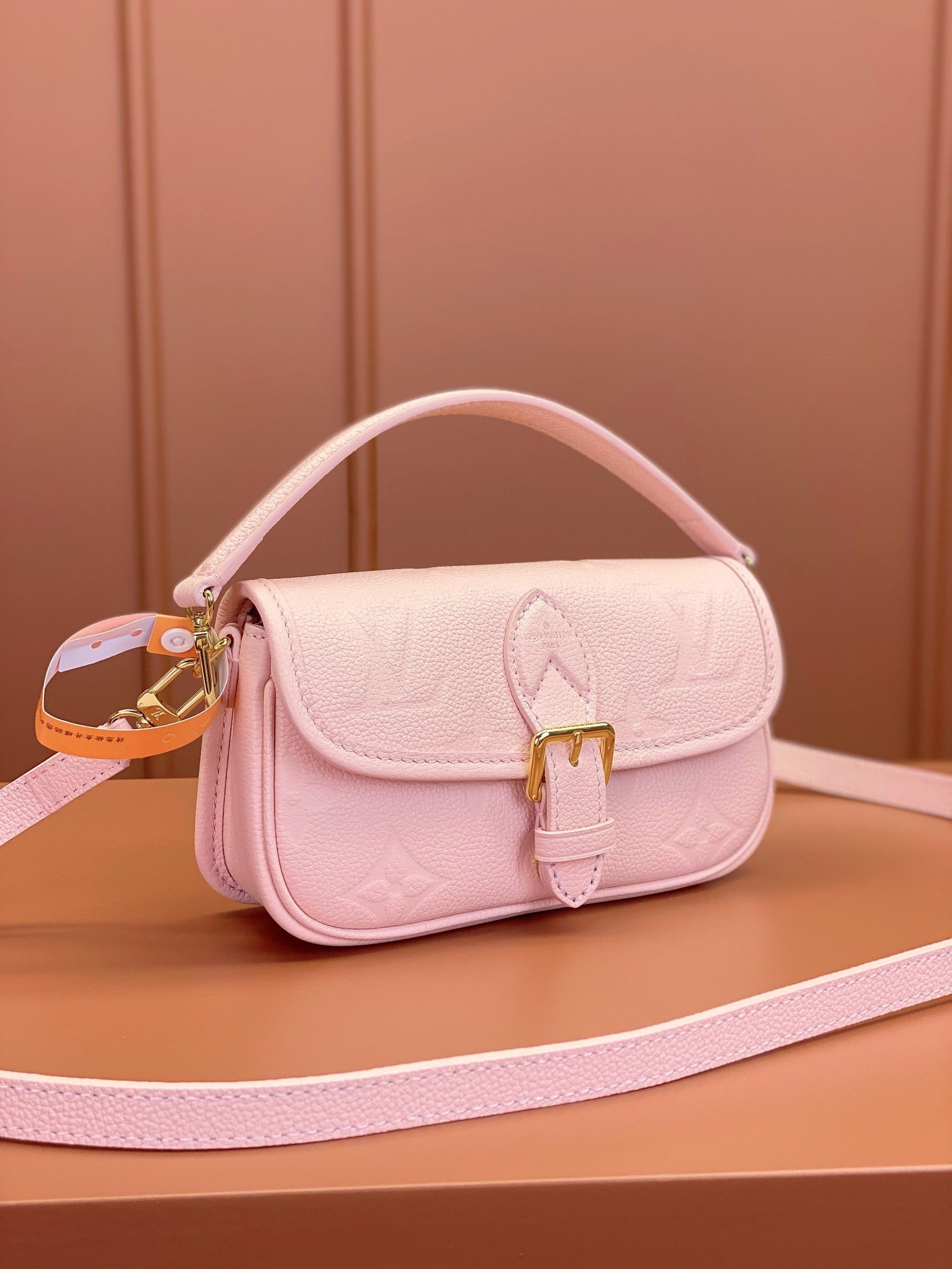 The Nano Diane in bicolor Monogram Empreinte leather is a miniaturized version of the emblematic Diane bag. This meticulously crafted piece has all the key details of the original design, including its rounded flap, piped edges and belt-style, magnetic closure. Its removable handle and removable, adjustable shoulder strap offer different carry options.