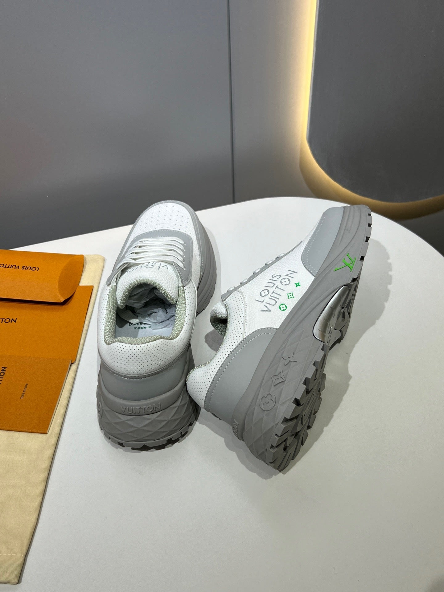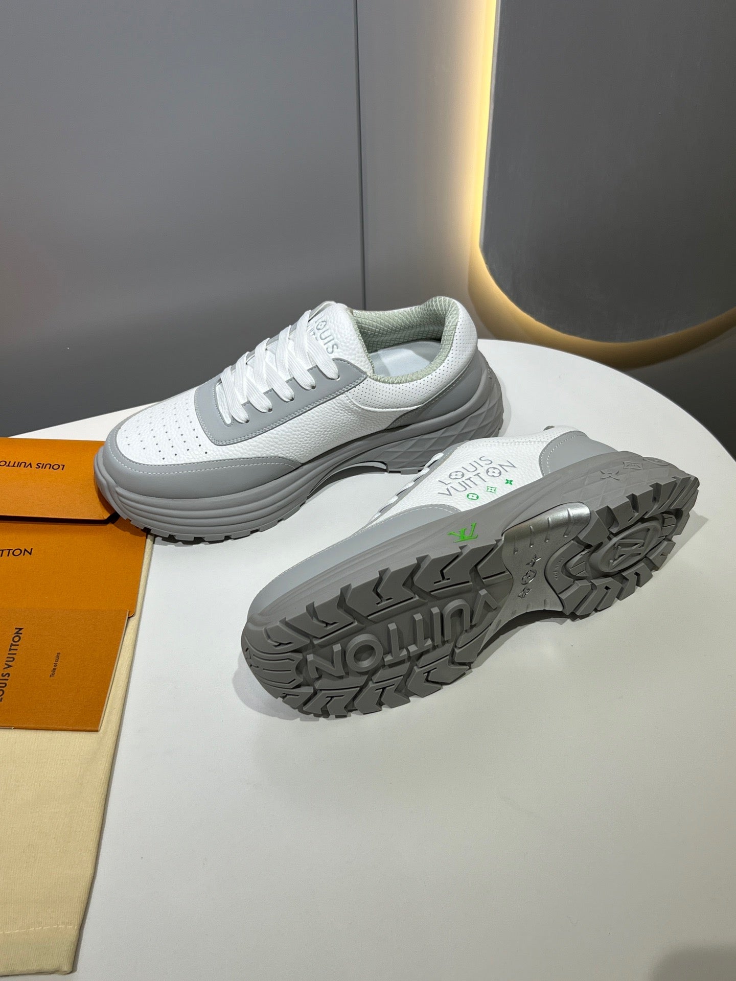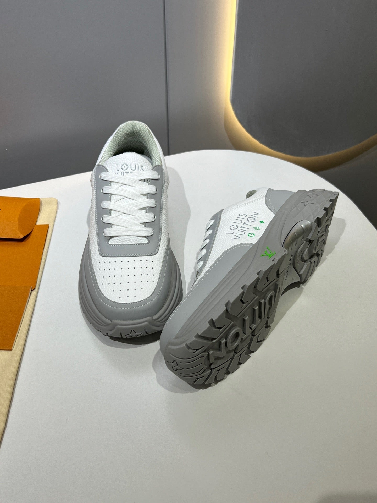 The LV Discovery derby in calf leather derives from a style seen on the runway at Louis Vuitton’s Fall-Winter 2023 show. This model incorporates technical details inspired by outdoor shoes, notably a lightweight rubber outsole designed for bounce and grip. It bears the Vuitton signature on the side and LV Initials and Monogram Flowers on the outsole.