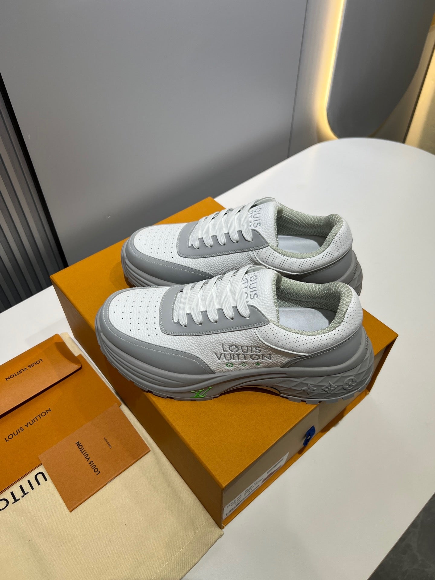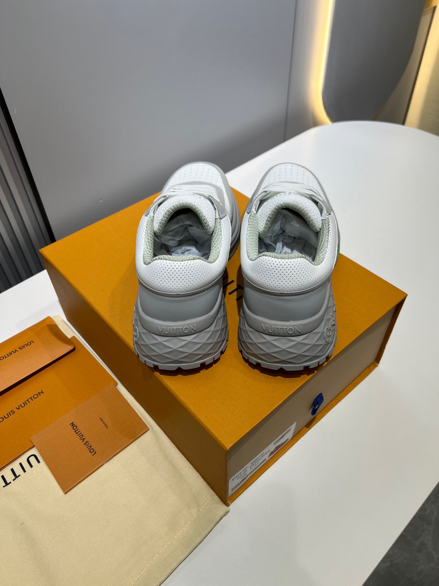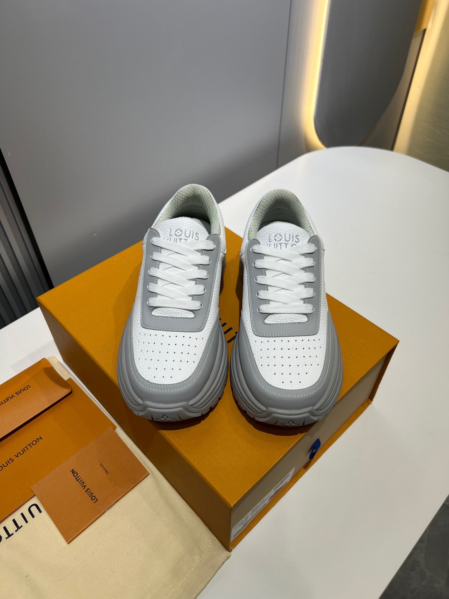 The LV Discovery derby in calf leather derives from a style seen on the runway at Louis Vuitton’s Fall-Winter 2023 show. This model incorporates technical details inspired by outdoor shoes, notably a lightweight rubber outsole designed for bounce and grip. It bears the Vuitton signature on the side and LV Initials and Monogram Flowers on the outsole.