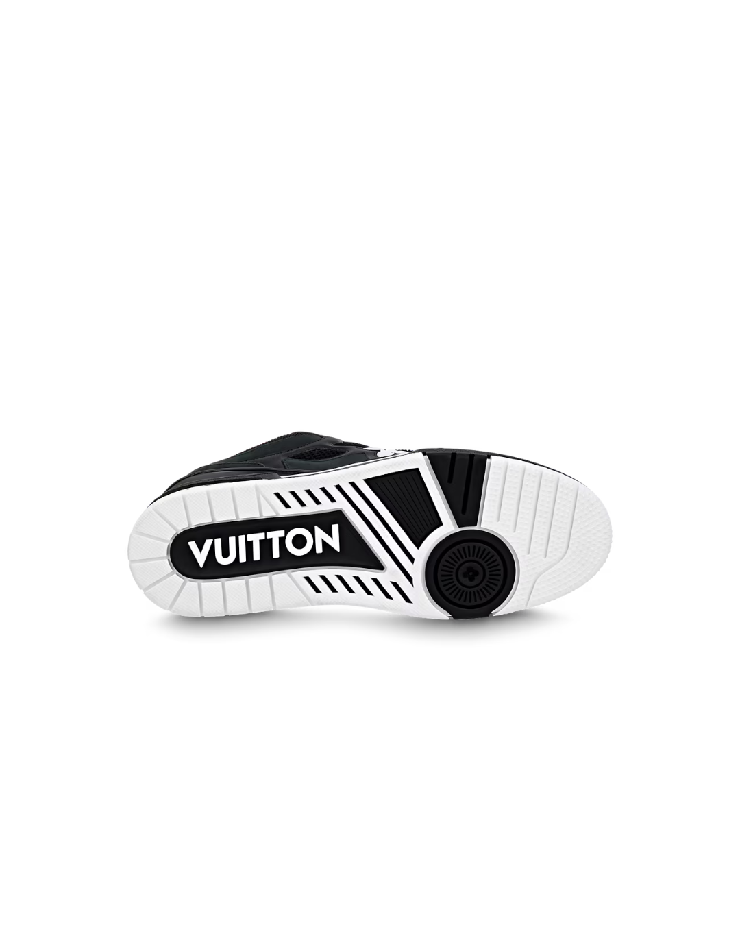 The LV Skate sneaker references a Nineties-inspired design first seen at Louis Vuitton's Fall-Winter 2022 men's show. Its elaborate, bicolor upper with Monogram Flower detailing combines technical mesh, calf leather and suede. This model is notable for its padded collar, technical double laces and bicolor rubber outsole decorated with Monogram Flowers.