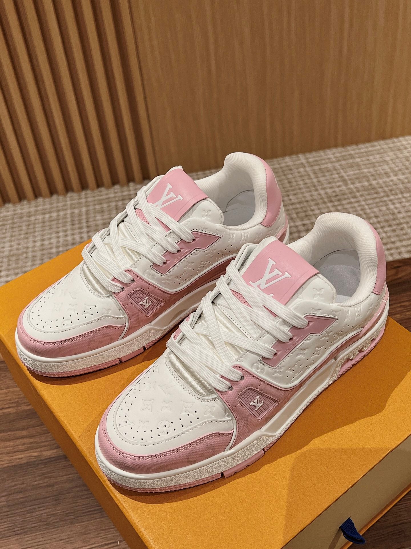 This colorful interpretation of the LV Trainer sneaker comes in Monogram denim and features an adjustable velcro strap over the laces. This cult model, designed by Virgil Abloh, was inspired by vintage basketball sneakers. Among its numerous signature details are Monogram Flowers on the strap and outsole, and an oversized Monogram Flower on the side.