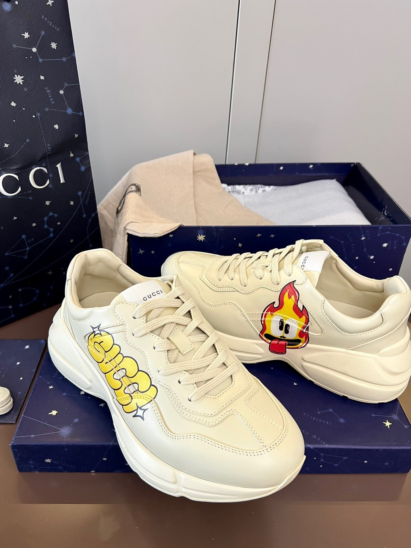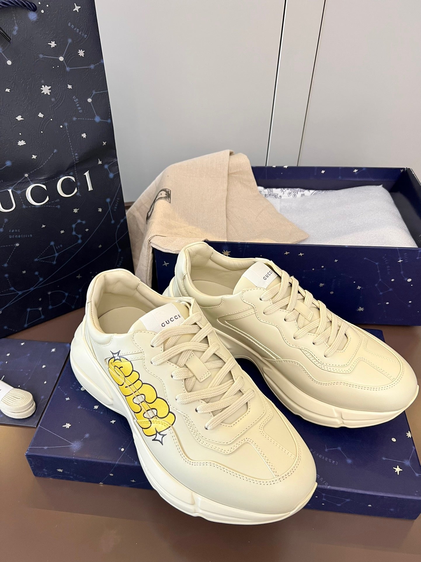Designed with a thick sole and bulky construction, the sneaker has a retro influence in leather with a vintage Gucci logo inspired by prints from the 1980s.