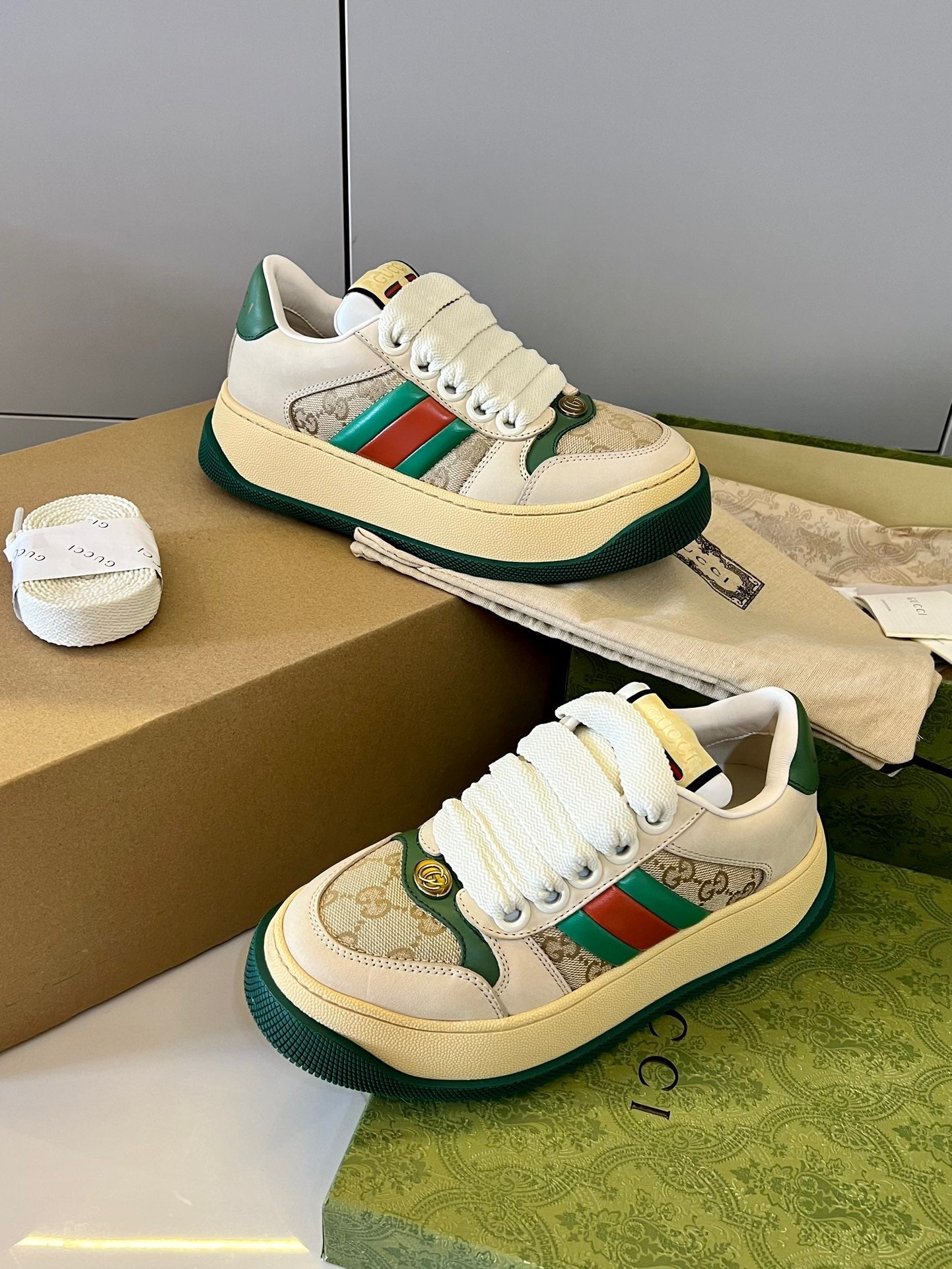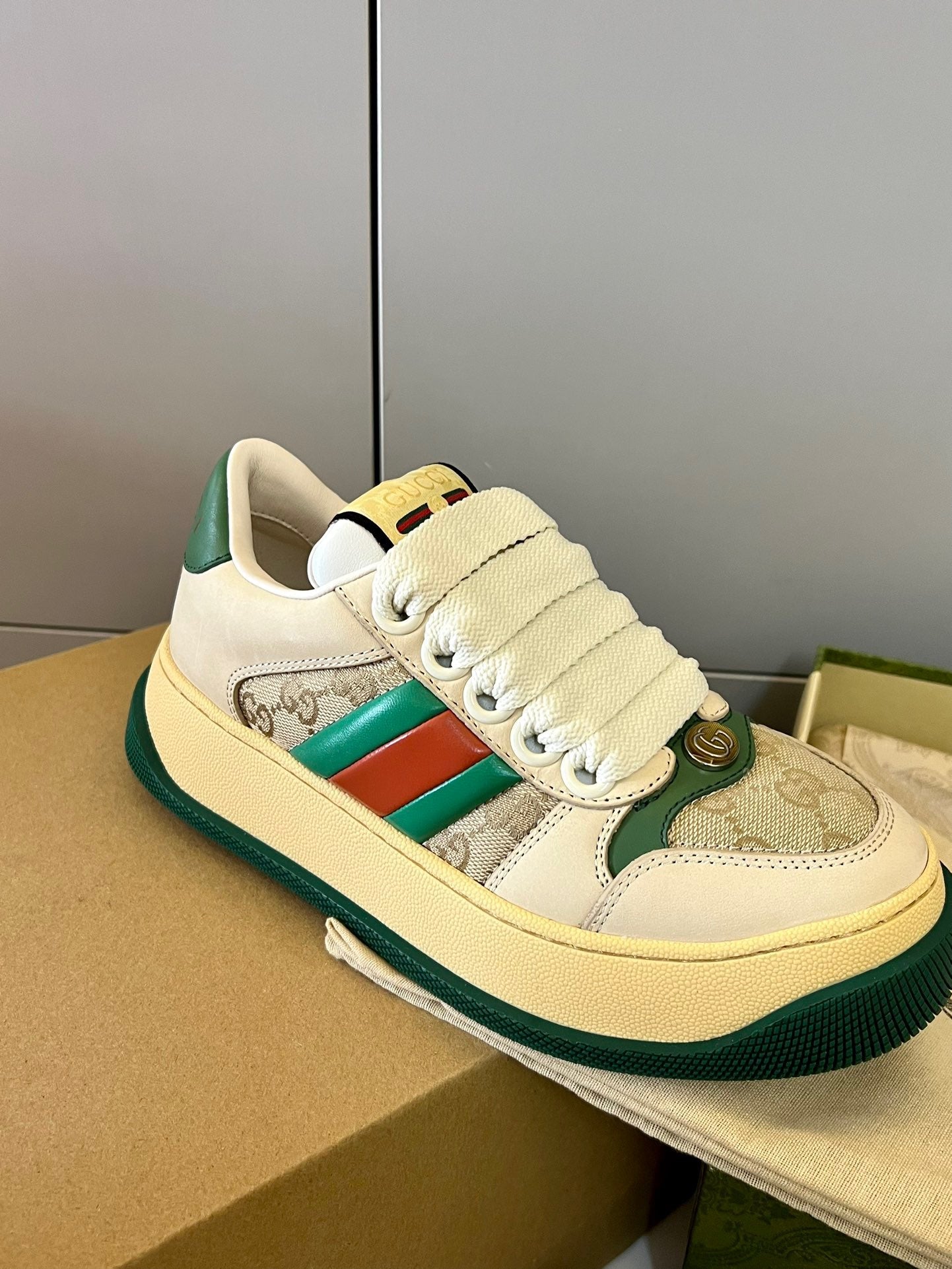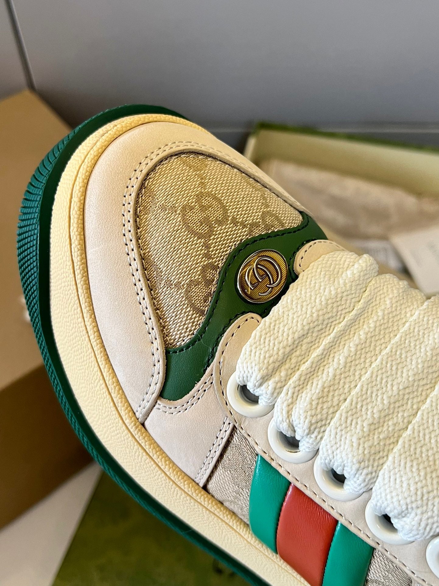 Inspired by the summer spirit and beach clubs on the Italian coast, this item is part of Gucci Lido. Influenced by classic trainers from the 1970s, the Screener sneakers is named for the defensive sports move. This variation, in white purple leather is defined by a GG Crystal canvas insert detail.
