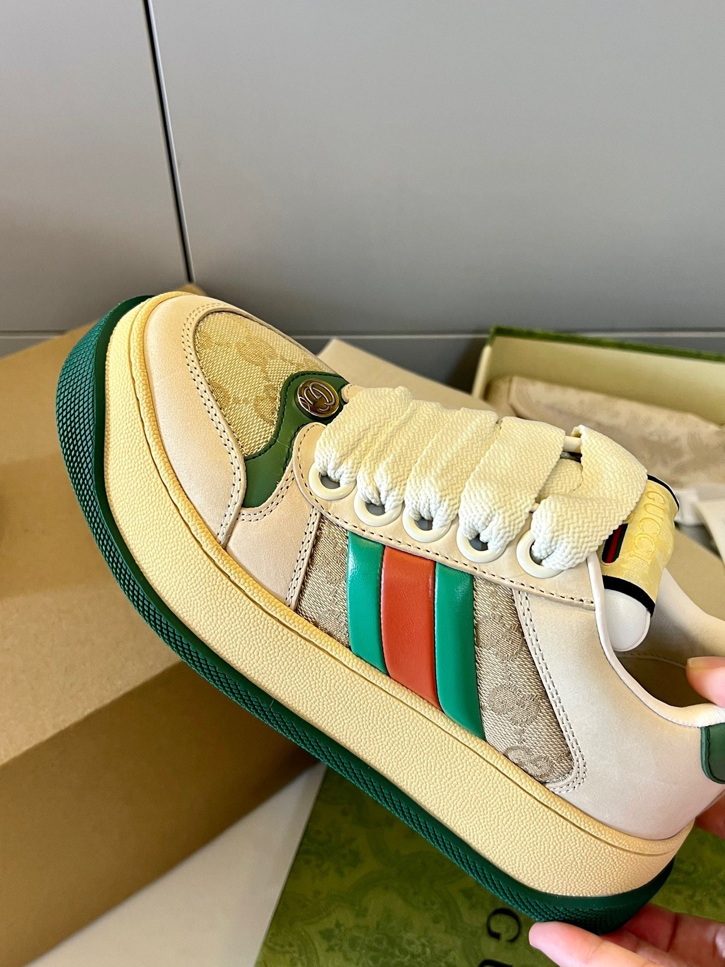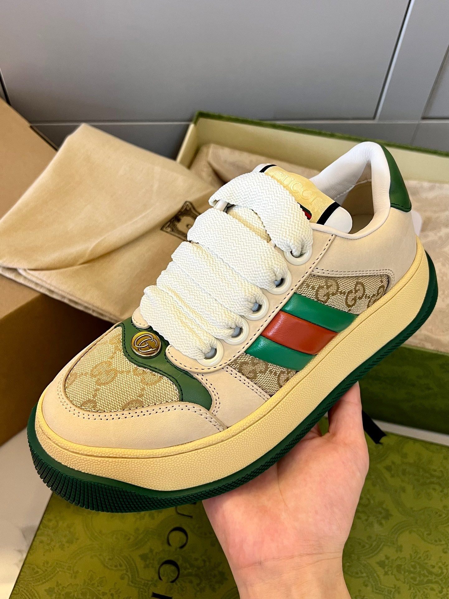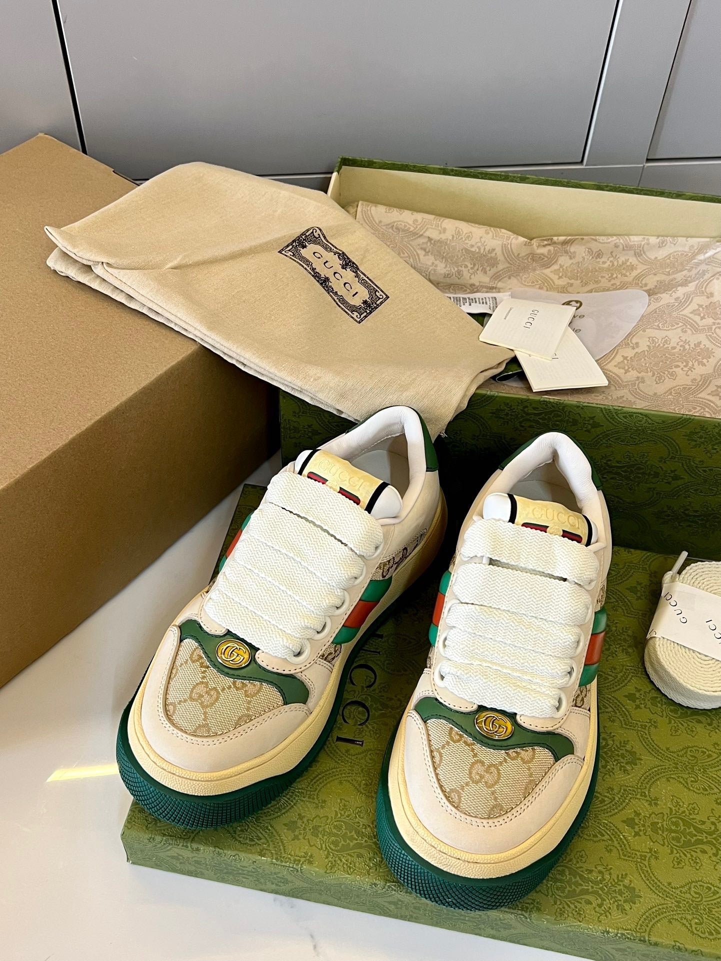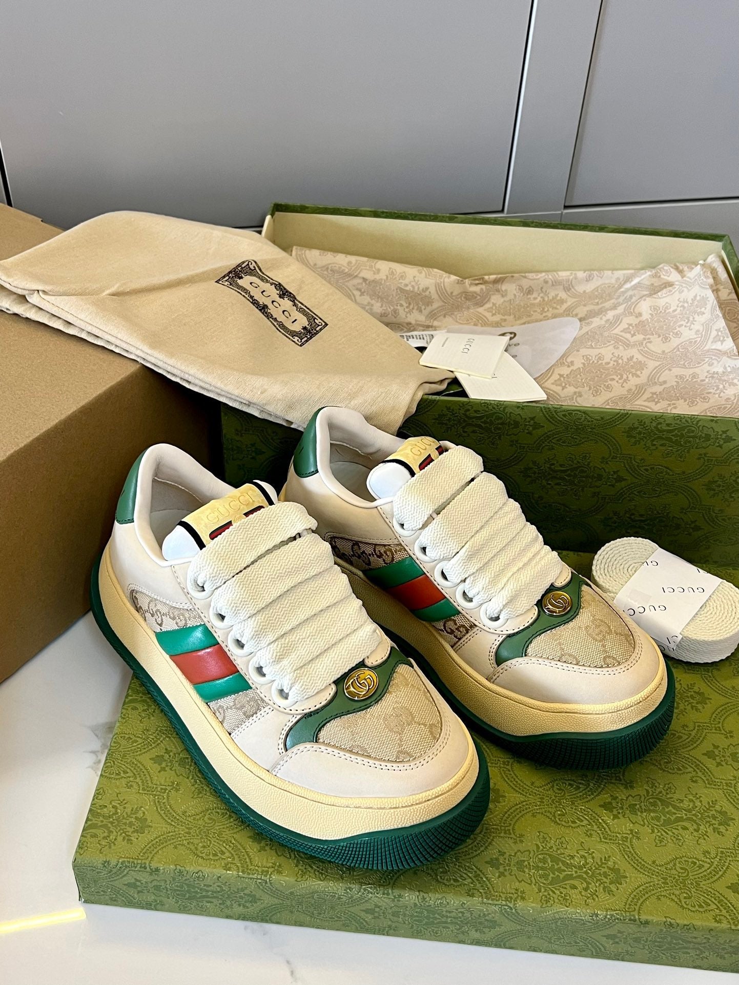 Inspired by the summer spirit and beach clubs on the Italian coast, this item is part of Gucci Lido. Influenced by classic trainers from the 1970s, the Screener sneakers is named for the defensive sports move. This variation, in white purple leather is defined by a GG Crystal canvas insert detail.